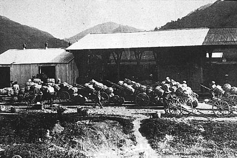 今は懐かしい萩特産・夏みかんの出荷(新川、昭和11年)