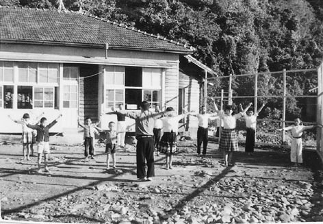 小さな島の分校でのラジオ体操(昭和35年ごろ、尾島)