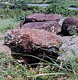 島の南東部にあたる横浦海岸一帯の長さ約300メートル、幅50メートルから100メートルの範囲には、積石塚の古墳群が分布しており、その数はおよそ200基に達するものと推測されている。この「ジーコンボ」と呼ばれる古墳群は、7世紀後半頃から10世紀はじめ頃に築造されたものといわれ、石室の構造は、地面を掘り下げて造られており、大きさは様ざまで、およそ四種類に大別されるが、全長約3メートル、中央の幅は約1.2メートルのものもあり、天井石が載せられている。これらの古墳より出土した埋蔵品から、鉄刀や鏃などの利器や当時の貴人や高官たちの装身具(金環、銀環及び玉類)など副葬品が数多く見られ、考古学上、歴史上からも重要なものである。なお、この古墳群は昭和59年に国の指定史跡とされた。