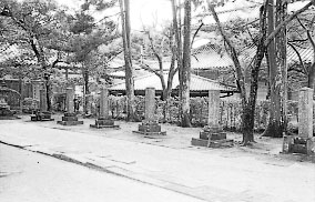 萩藩主毛利家菩提寺東光寺の大雄宝殿の裏、歴代藩主墓所の前広場に林立している。明治二十二年(一八八九)十月、東京在住の旧藩士杉孫七郎や地元の杉民治らが斡施し、元治元年(一八六四)藩の内訌によって殉死した四大夫、四参謀、七政務員の招魂墓が遺品を埋めて造営された。のち明治三十一年(一八九八)に、周布政之助の招魂墓も同じところに建てられた。 それぞれの墓碑は角柱で、高さ一二〇センチメートル、幅二四センチメートル、表に岡守節の書で名前が刻まれている。右側面には辞世の詩歌、左側面には没年月日と年令が彫られている。 ![]() 益田右衛門介親施 辞世 今更に なにあやしまむ 空蝉の よきもあしきも 名のかはる世は 元治元年十一月十二日 三十二歳 福原越後元| 中原賊を逐気鷹揚 猟狗煮らるる時この殃に罹る 愁思只こゆ三閲月齡将につきんとす玉旬霜 体はやするを知る食に甜味なし 髪はひねるに足る詩は章を調べ難し 嘆ず邦家何の日か定まらん 忠精一貫す鉄心腸 幽囚中作 元治元年十一月十二日 五十歳 国司信濃親相 辞世 よしやよし 世をさるとても わがこゝろ 皇国のために なほつくさばや 元治元年十一月十二日 二十四歳 清水清太郎親知 幽囚中詠 世のことは 絶えてをぐらき 山里に こゝろつくしの 夜半のともし火 元治元年十二月二十五日 二十二歳 ![]() 竹内正兵衛勝愛 辞世 武士の 露ときえゆく 枯野かな 元治元年十一月十二日 四十八歳 中村九郎清旭 幽囚中作 子房の一撃豈に功なからんや 天下何の辺か 沛公出 でん 命を山中に待ちて猶未だ死せず 白雲黄菊自ら 秋風 元治元年十一月十二日 三十七歳 佐久間佐兵衛義済 辞世 今ははや ことの葉くさも 世の霜に きえゆく身とは なりにけるかな 元治元年十一月十二日 三十二歳 宍戸左馬之介真澂 辞世 われならぬ 人のしをりを たどりつゝ たか根に匂ふ はなをみるかな 元治元年十一月十二日 六十一歳 渡辺内蔵太暢 辞世 人間の行路ことごとく風波 一死君に報ゆ 豈に他あらんや 姦吏は知らず賈生の志 流涕すこの国家をいかんせん 元治元年十二月十九日 二十九歳 楢崎弥八郎清義 辞世 日出づるの邦義方を事とす 飢えず凍えず星 霜を送る 今宵一死聖明に酬ゆ 二十八年更 に長きを覚ゆ 元治元年十二月十九日 二十八歳 山田亦介公章 辞世 ちる時は ちるもよしのの 山さくら 花にたぐへし 武士の身は 元治元年十二月十九日 五十六歳 大和国之助直利 辞世 君がため 刃にそむる 真心の いとど嬉しき 心地こそすれ 元治元年十二月十九日 五十八歳 前田孫右衛門利 辞世 一死飴の如し豈に敢て辞せんや 官に居りて 半生 清時に値ふ君に酬ゆ心 事何ぞ弁ずる をもちけん 只青天白日の知るあり 元治元年十二月十九日 四十七歳 松島剛蔵久誠 辞世 かねてより たてしこゝろの たゆむべき たとへこの身は くちはてぬとも 元治元年十二月十九日 四十四歳 毛利登人武 辞世 皇の 道しるき世を ねかふかな わが身はこけの したにくつとも 元治元年十二月十九日 四十四歳 |