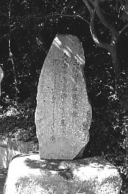 三條實美卿遺詠 この国の濁らぬ水にすむ魚は 游ふさまさへ勇ましきかな 萩市越ヶ浜笠山の麓、明神池の大池と小池の境に架かっている石橋を渡ると、北側正面の山麓に高さ一七〇センチメートル、幅八〇センチメートルの石碑が建っている。 文久三年(一八六三)八月十八日の京都での政変によって、七卿の一人として長州に下った三条実美は、山口湯田の高田御殿に隠棲していたが、同年十一月十一日、萩藩主毛利敬親に誘われて萩の御客屋に宿泊した。この歌は、その時越ヶ浜明神池畔の御茶屋に遊び、その旅情をなぐさめられた際に、池中に遊ぶ魚の群を見て、即興に詠じたものである。 昭和十一年(一九三六)王政復古七十周年に当たり、元衆議院議員国重政亮が自ら筆をとって卿の偉業を偲び、遺詠を彫って建立したのである。 三条実美は幕末から明治初年にかけて活躍した公卿で、尊王攘夷運動に加わり、長州藩と密接に提携、攘夷実現に努めた。文久三年の政変によって七卿の一人として長州に逃れたが、王政復古に際して帰京し、新政府の議定となった。明治元年(一八六八)には副総裁、輔相の要職、関東監察使のち鎮将として江戸開城後の東国経営にあたった。のち右大臣、太政大臣の職にあり、内閣制度新設以後は内大臣を務めた。 |