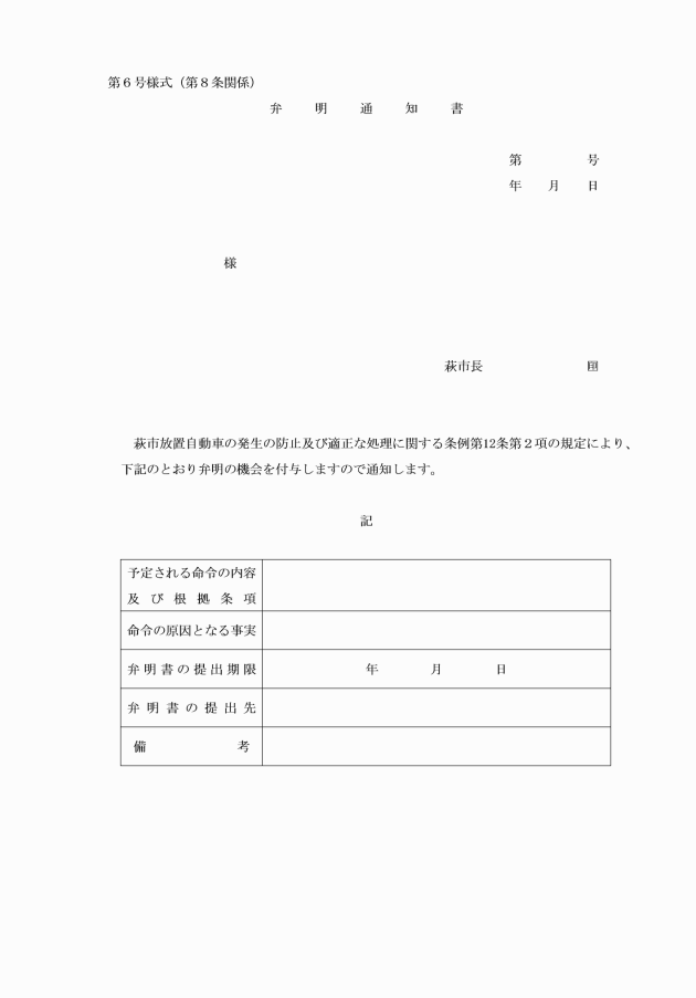 ○萩市放置自動車の発生の防止及び適正な処理に関する条例施行規則