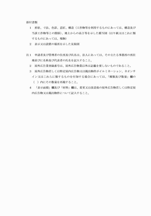 (2) 屋外広告物を掲出する物件の位置及び形状を変更することなく、当該許可の期間内に同一業務に関する屋外広告物を定期的に取り替えて表示する場合